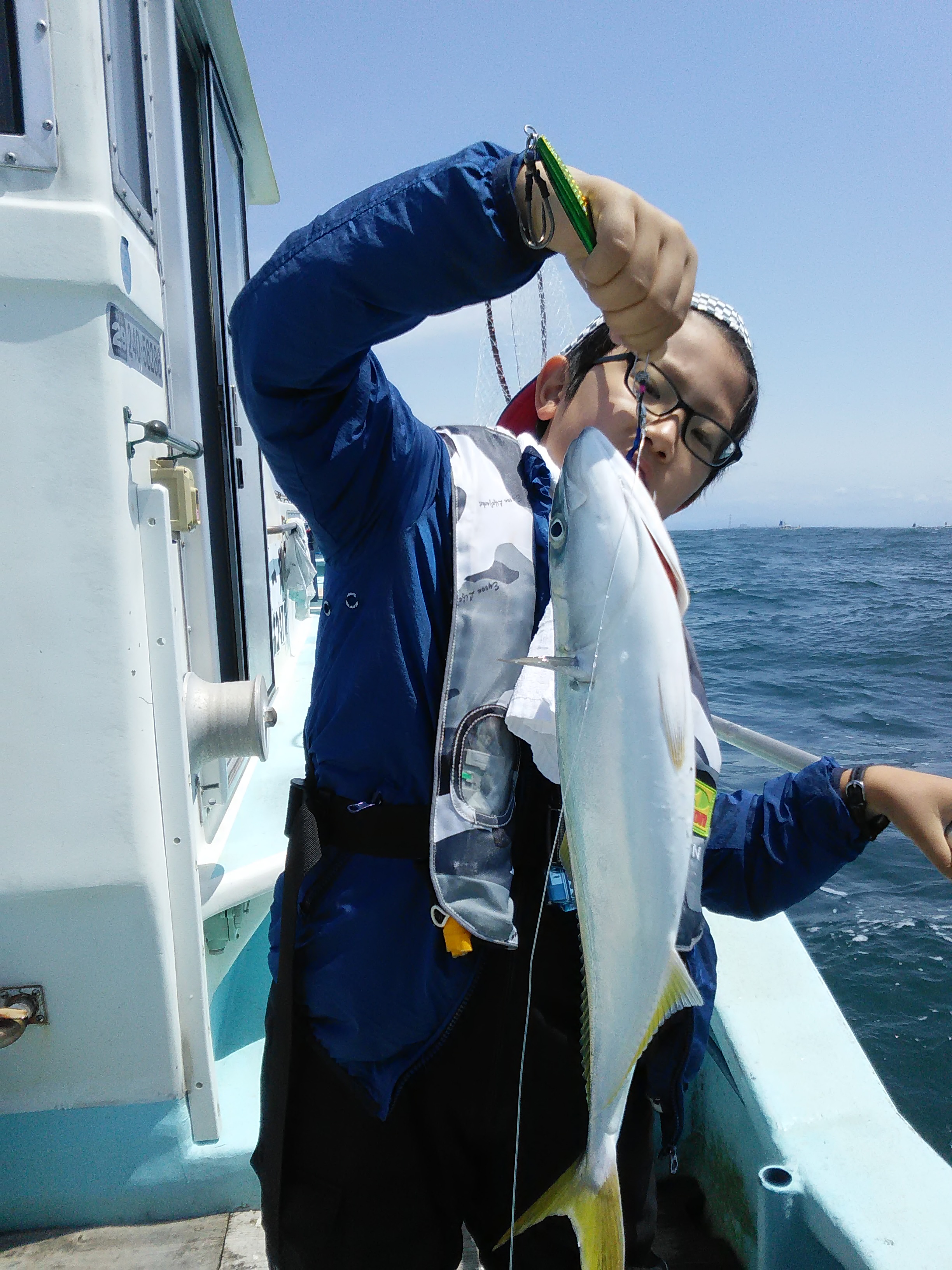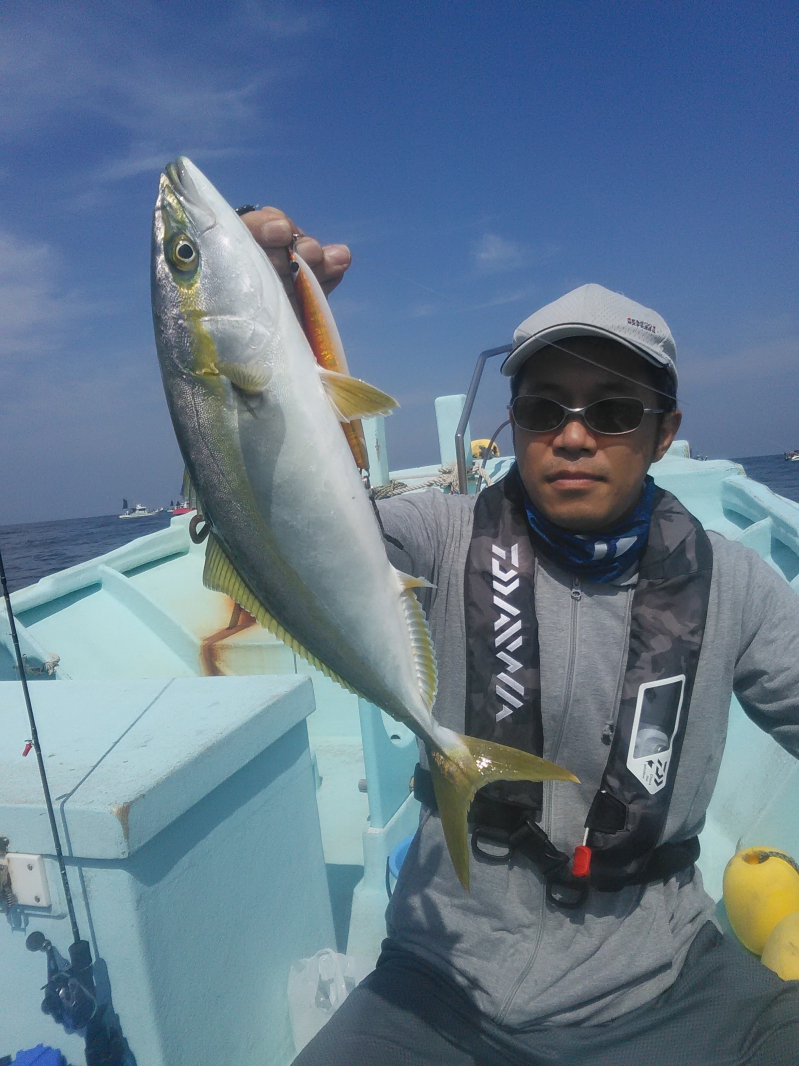 青物狙いたいとのこと、青物狙いのポイント伊勢湾・伊良湖沖へ走りました。ベイト記録はありました。朝、喰いは良くありませんでしたが、潮変わり前後に釣れました。