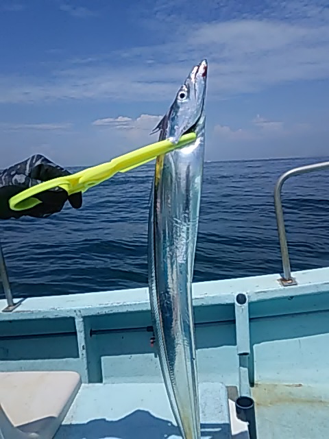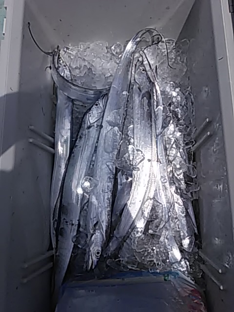 - 見て下さい。良い型のタチウオ、喰いはよくなかったですが、どうにかお土産が出来ました。